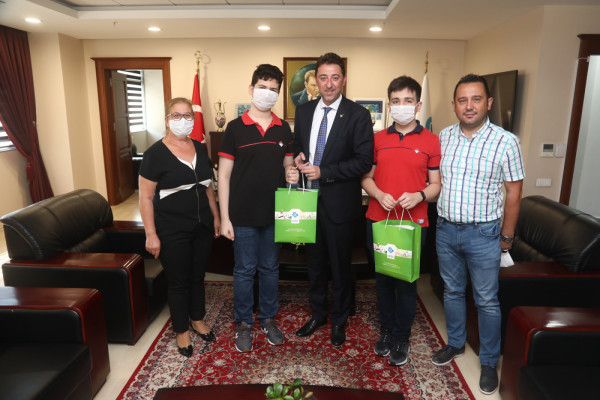 Belediye Başkanı Av. Tolga Tosun, Liselere Geçiş Sınavında (LGS) 500 tam puan alarak Türkiye 1.si olan Bandırma Bahçeşehir Koleji öğrencileri Kerem Yiğit Küçükkale ve Mert Kemal Kü