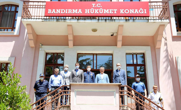 Antalya Valisi olarak atanan Balıkesir Valisi Ersin Yazıcı vedalaşmak için geldiği Bandırmada protokol üyeleri ile Kaymakamlık makamında bir araya geldi.