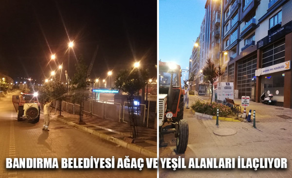 Bandırma Belediyesi ekipleri, kentimizdeki ağaçların gelişimini kuvvetlendirip sağlıklı kılmak amacıyla, ağaç ve yeşilliğe zarar veren her türlü haşereye ve hastalığa karşı ilaçlam