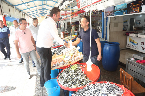 Bandırma Paşakonak Mahallesi Muhtarı İshak Candan, Sunullah Mahallesi Muhtarı Şener Arabacılar ve Dere Mahallesi Muhtarı Nevzat Man Belediye Başkanı Av.Tolga Tosun’u makamında ziya